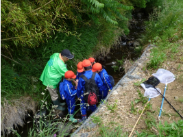 世界かんがい施設遺産を使い 水源から海へ・海から山へ 水質検査や生物探検等を行い 水の大切さと、郷土の歴史の 学習をお手伝いしています。